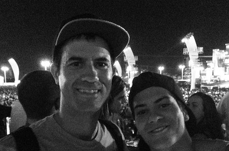 O muso tirou foto ao lado do famoso skatista Bob Burnquist, que também foi ao festival. Anda pouco de skate esse...Embora seja brasileiro, Bob vive nos Estados Unidos.